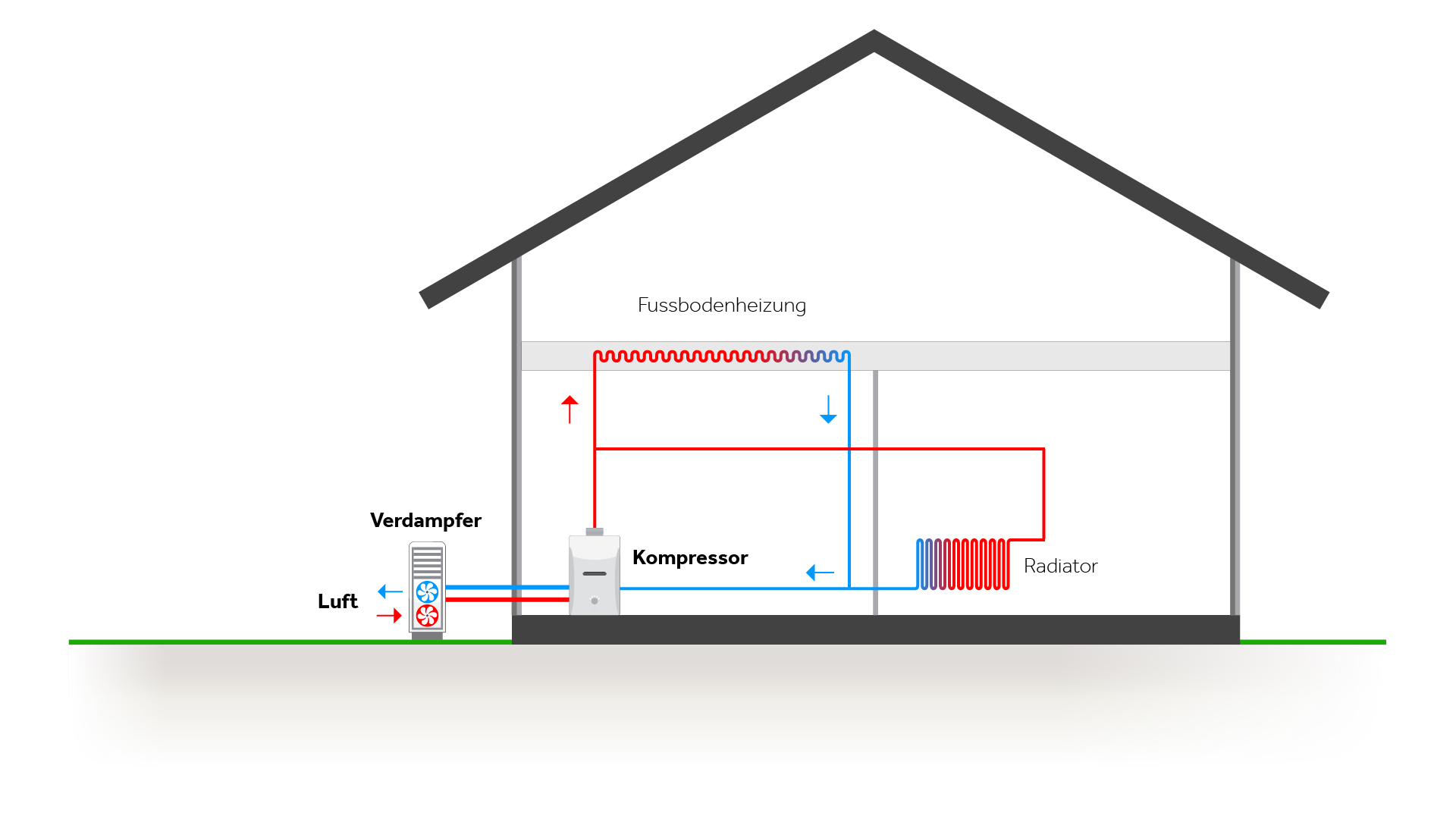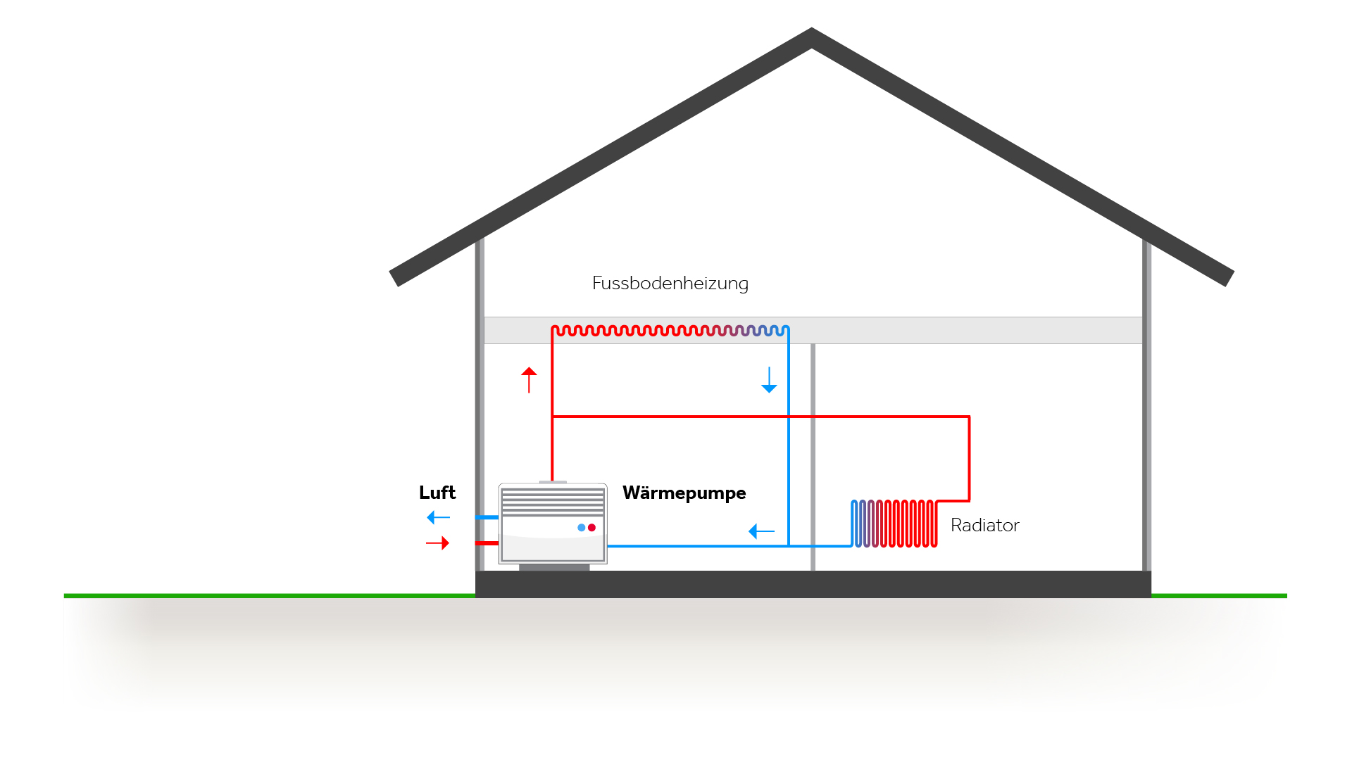 Das unkomplizierte und umweltschonende Heizsystem: Luft/Wasser-Wärmepumpen entziehen der Umgebungsluft Energie und heizen damit auf energieeffiziente Weise Ihr Haus wohlig warm auf. Sparen Sie Heizkosten und reduzieren Sie ihren CO2-Ausstoss mit einer Luft/Wasser-Wärmepumpe.